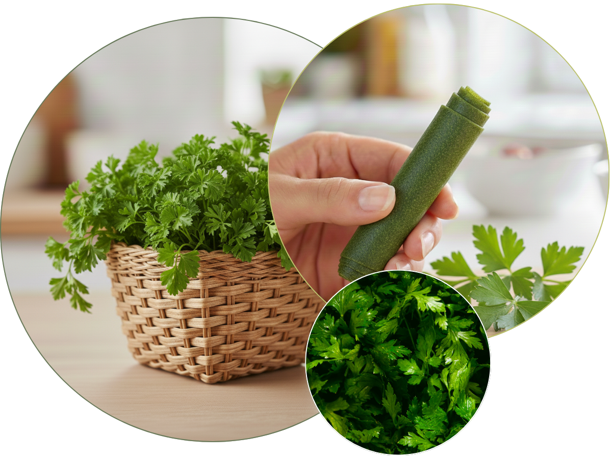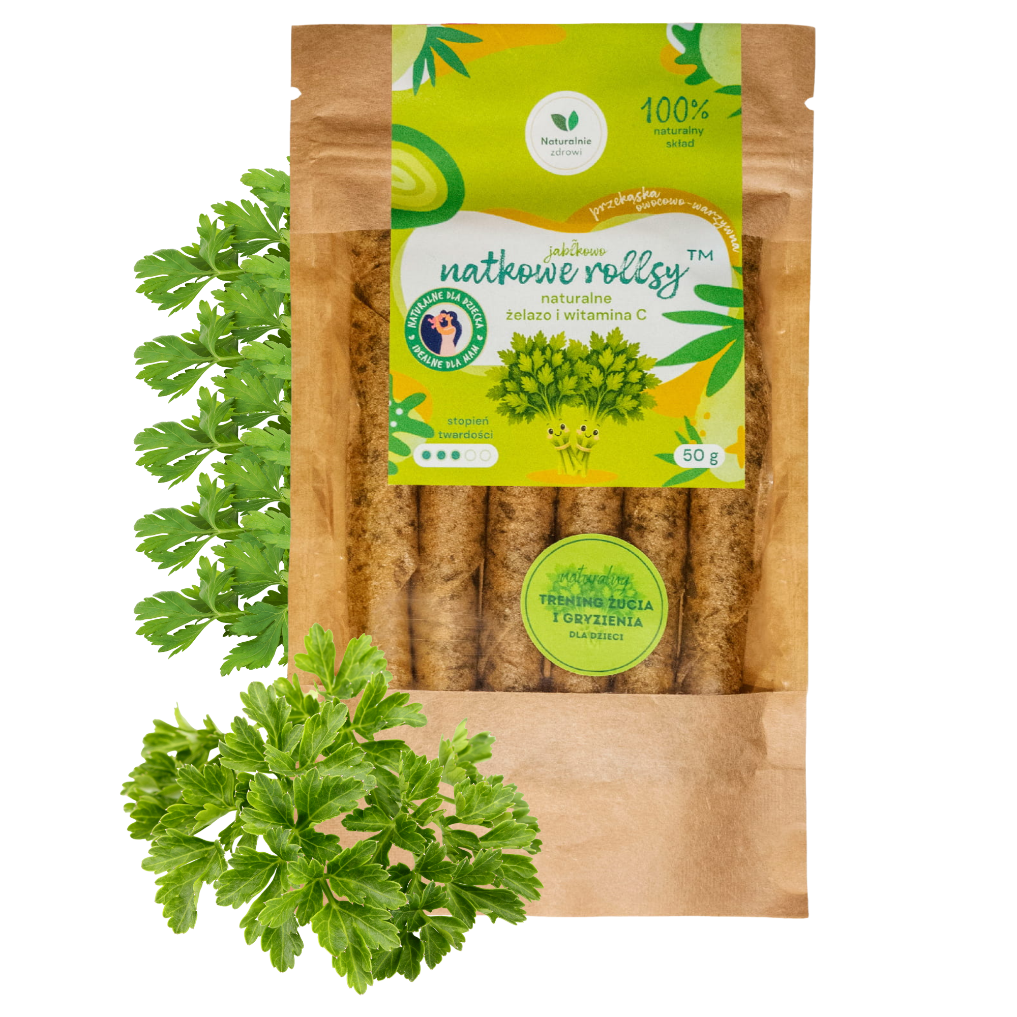 Natkowe rollsy™ to smaczny sposób na dostarczenie witaminy C, żelaza i folianów, które wspierają witalność i prawidłowe funkcjonowanie organizmu. To zielona moc natki pietruszki w pysznej, wygodnej formie – idealna zarówno dla najmłodszych, jak i dorosłych.