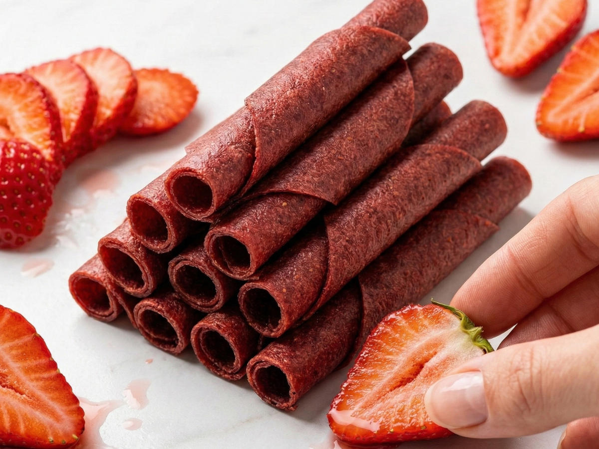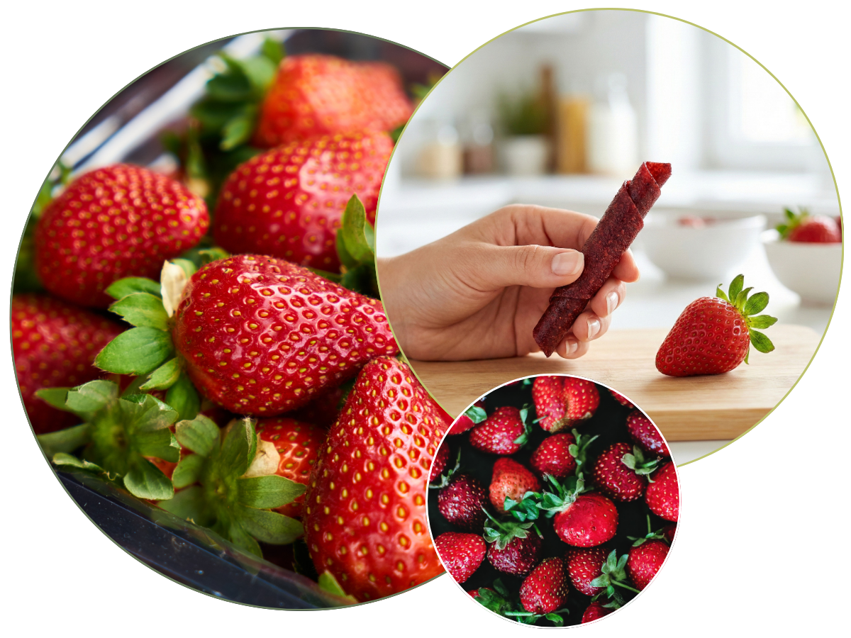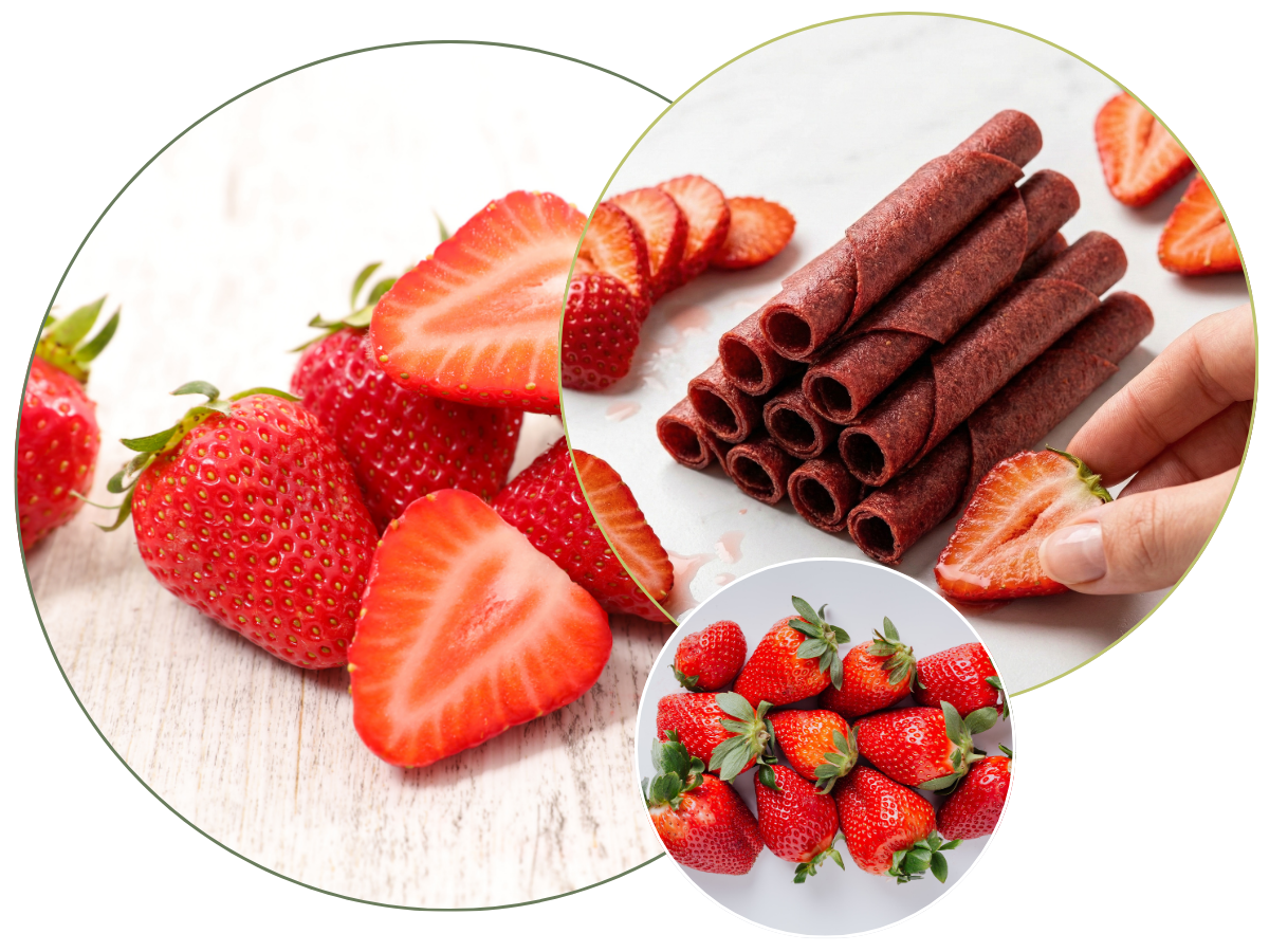 Rollsy™ powstają w procesie delikatnego suszenia musu truskawkowego w niskich temperaturach. Dzięki temu zachowujemy to, co w owocach najcenniejsze – naturalne witaminy, minerały oraz intensywny, słodki aromat.