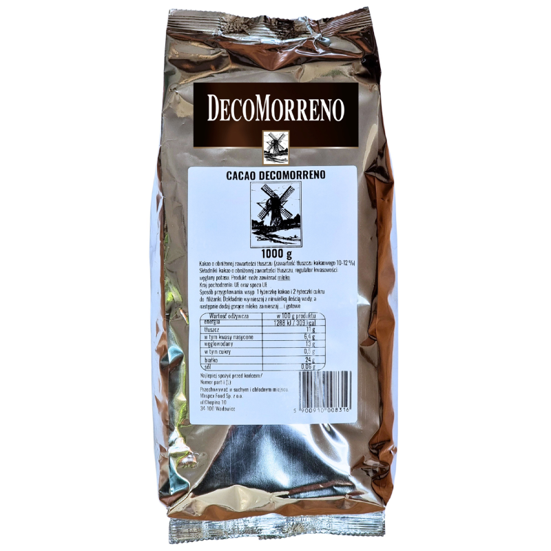 DecoMorreno to absolutny król tradycyjnego murzynka, domowych pierników oraz aksamitnych polew czekoladowych. Wykorzystaj je do przygotowania gęstego, gorącego kakao z piankami marshmallow lub jako dodatek do porannej owsianki, która doda Ci energii na cały dzień. W kuchni nowoczesnej świetnie sprawdzi się jako składnik zdrowych trufli z daktyli, domowej nutelli z awokado czy aromatycznego posypu do tiramisu. Jeśli chcesz przełamać smaki, dodaj szczyptę kakao do marynaty do dziczyzny lub wołowiny – nadasz mięsu niesamowitej głębi.