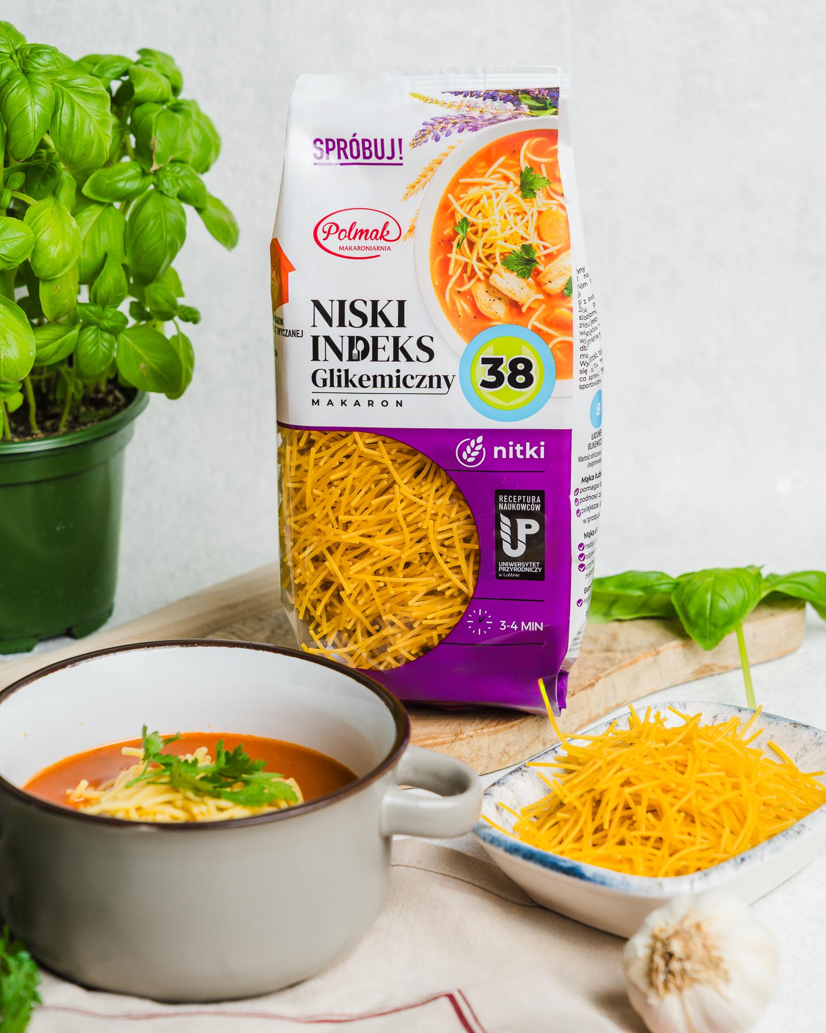 Makaron NITKI o bardzo niskim indeksie glikemicznym, który wyróżnia się żółtym kolorem (nie jest brązowy, jak makarony pełnoziarniste), smakiem podobnym do zwykłego makaronu (nie przypomina pełnoziarnistego), odpornością na rozgotowanie – gotowanie przez maksymalnie 3-4 minuty, niskim indeksem glikemicznym 38 (dla porównania, makaron pełnoziarnisty ma IG 55), sprawdzoną recepturą, opracowaną przez naukowców z Lubelskiego Uniwersytetu Przyrodniczego.